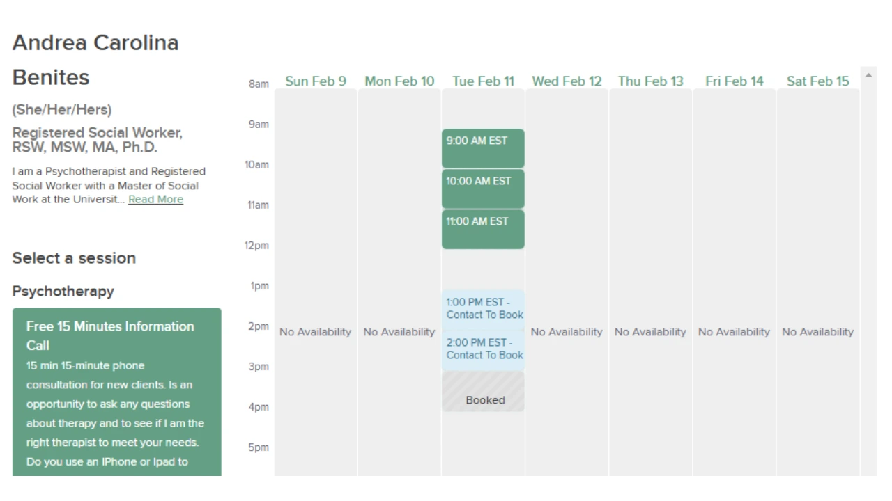 A maior parte dos horários disponíveis para atendimento são online (video). Também ofereço alguns horários reduzidos de atendimento presencial em Toronto (downtown), de acordo com a disponibilidade.